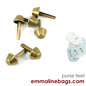 Bucket shaped purse feet available in shiny nickel, antique brass, gold, iridescent rainbow, copper & gunmetal. Easy to install, no special tools required. Includes 1 washer per foot for added stability.