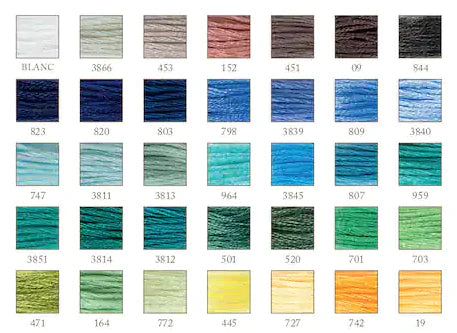This exclusive Collectors Tin has a luxurious matte silver finish and is embossed with the DMC logo. It is the perfect gift and contains one skein of each of the new 35 shades! This special set also includes two cross-stitch patterns.