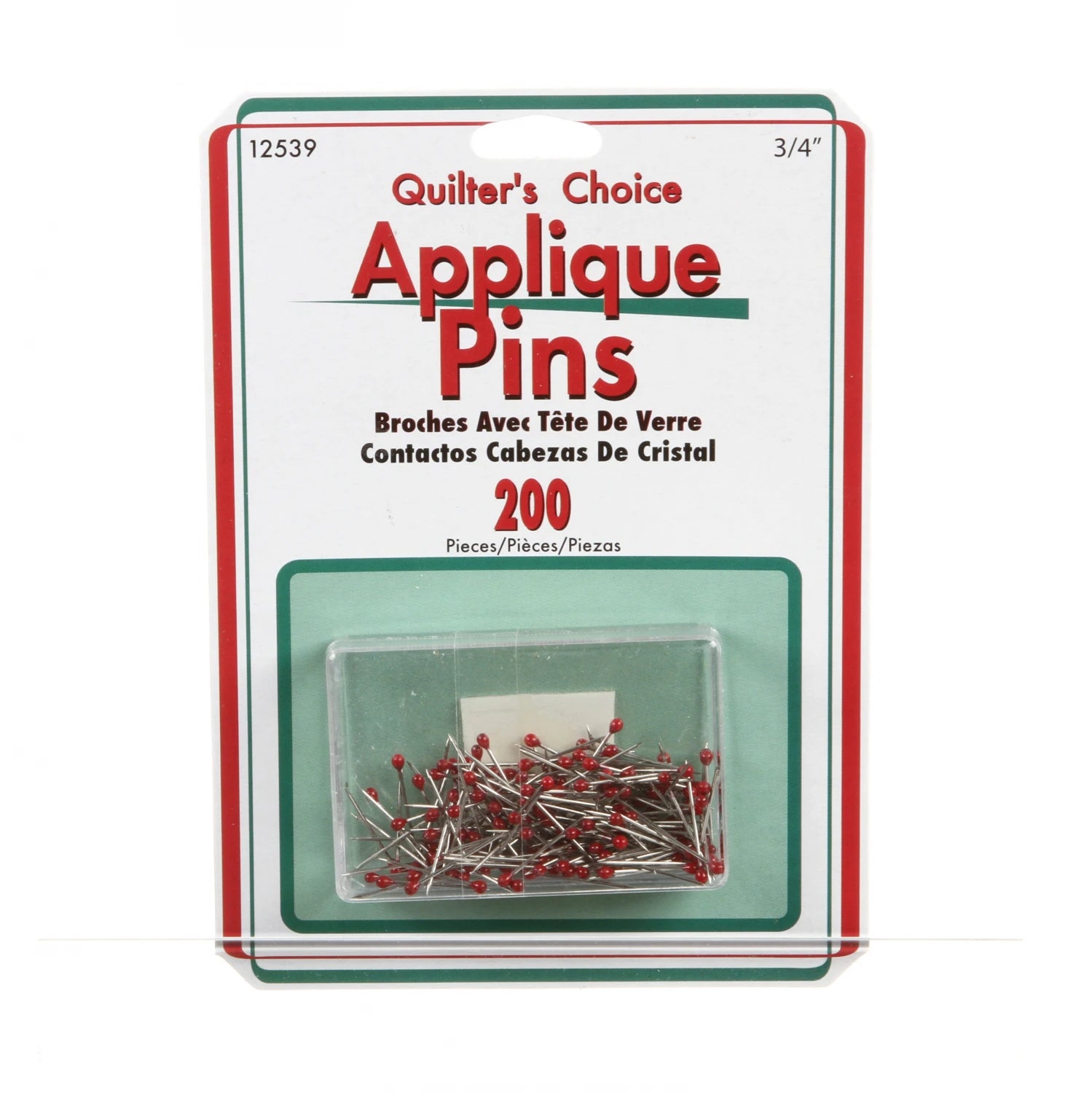 Red Head Appliqué Pins are great for holding and placing appliqué pieces to fabric while you sew. These appliqué pins have a 0.60mm steel shafts, and a length of 0.75in (18mm) and feature red heads (plastic), making them easier to place and remove. Yet they are small enough that they will not obstruct each other or your sewing. Each pack contains approx. 200 pieces.
