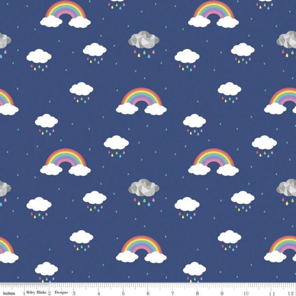 Dream by Kristy Lea of Quiet Play for Riley Blake Designs is great for quilting, apparel and home decor. This print features rainbow colored scallops with an occasional small white heart.