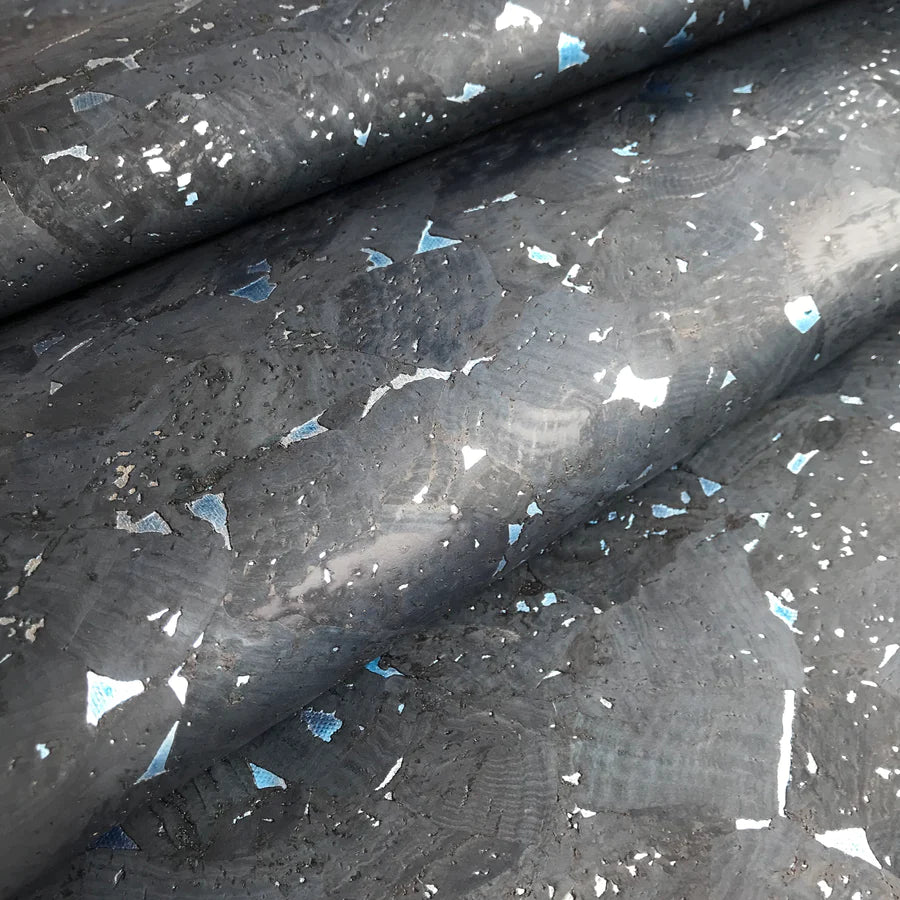 This cork fabric has navy base but with shiny silvery/blue flecks throughout.